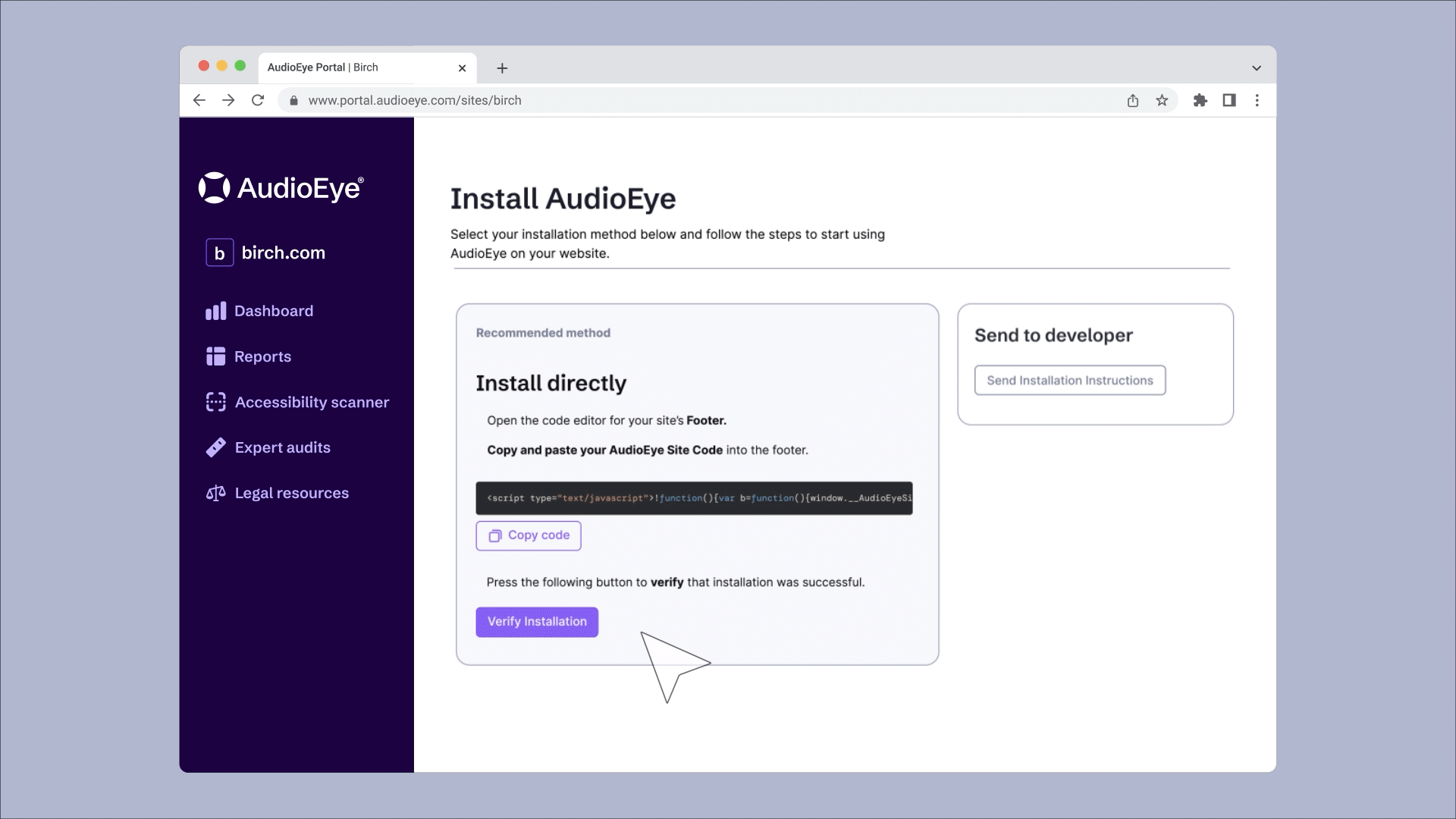 Description: Working on staff as the Motion and Video Lead at AudioEye, I helped develop a series of product demo videos covering the company's core product offerings. Designed to be short, accessible, and versatile, the videos supported sales conversations and conversions, customer onboarding, and internal training.